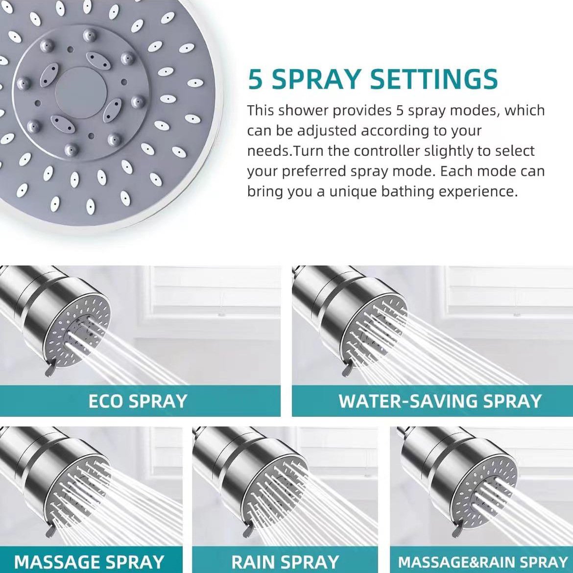 - Five unique spray settings: To create a spa-like experience tailored just for you, whether you need a gentle rinse or a rejuvenating massage, choose this head.